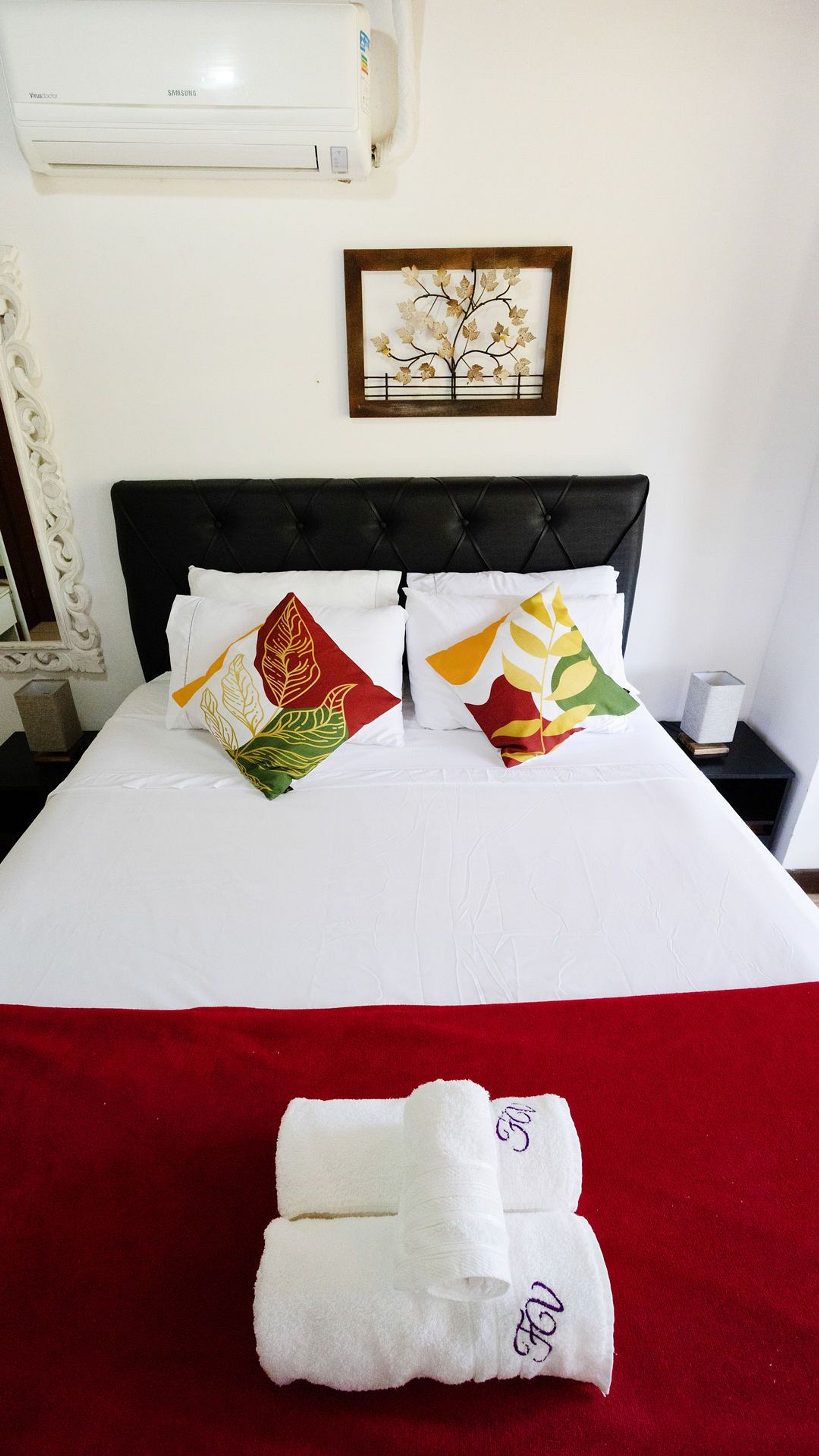 Acomodações, 1 suíte + 2 quartos, todos com ar-condicionado Split, roupas de cama e banho incluídas.