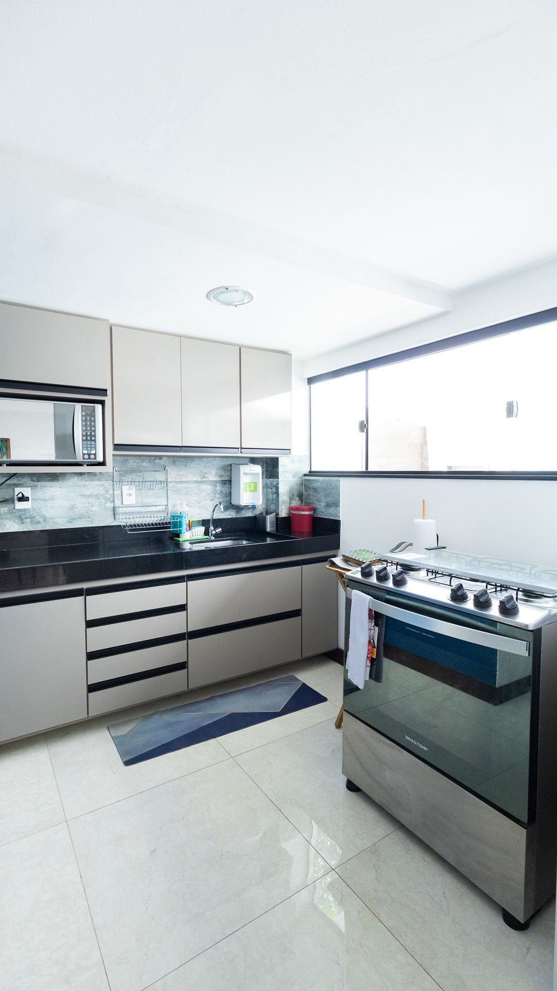 Cozinha equipada e área gourmet completa para preparo de refeições.